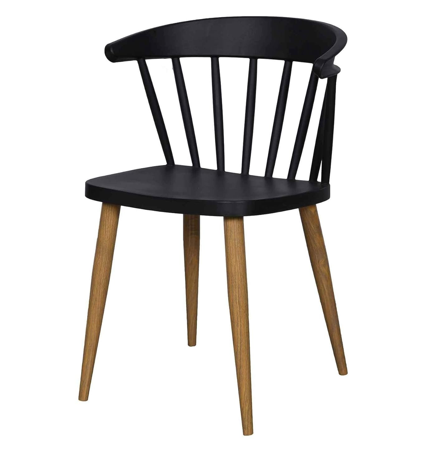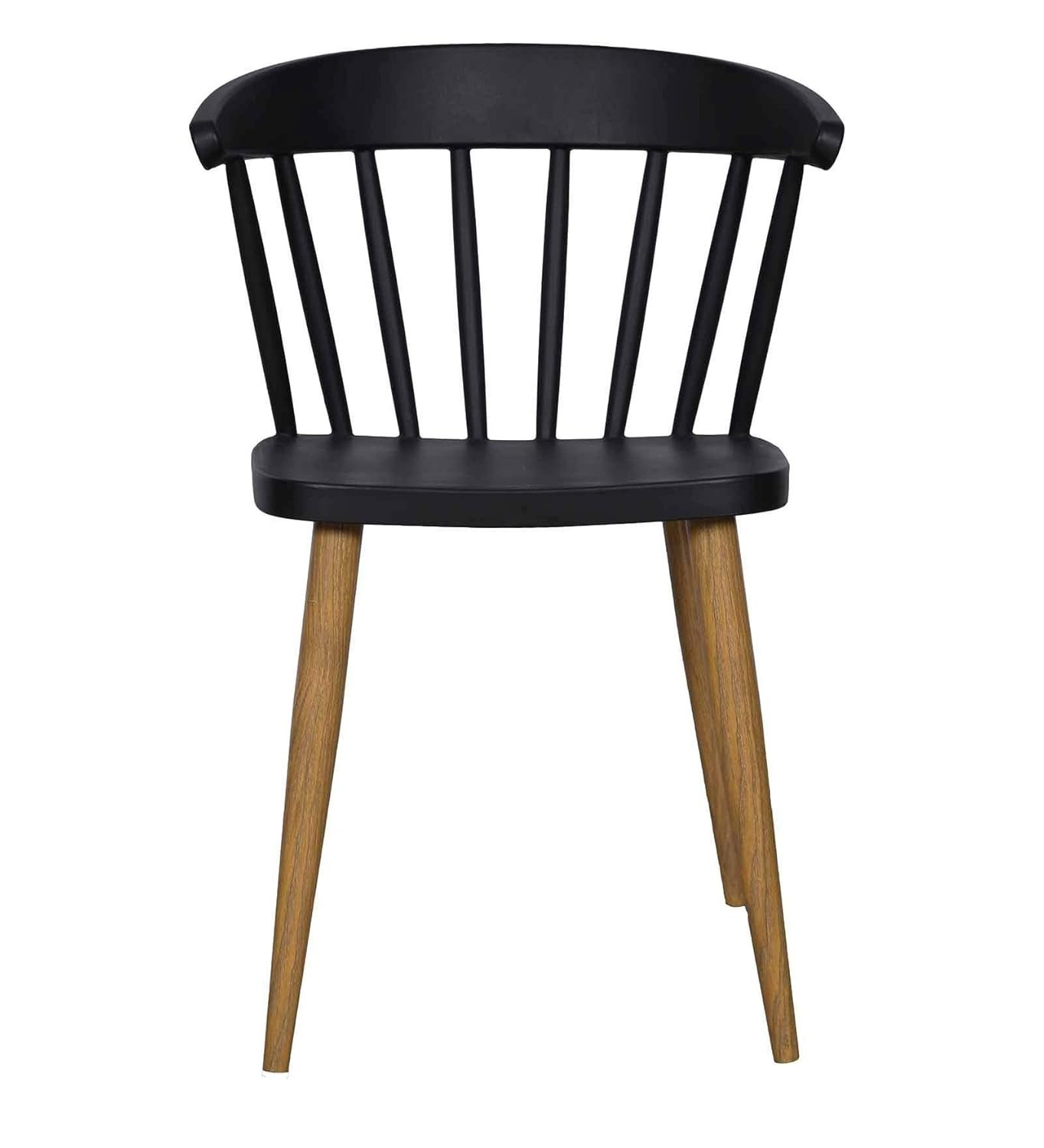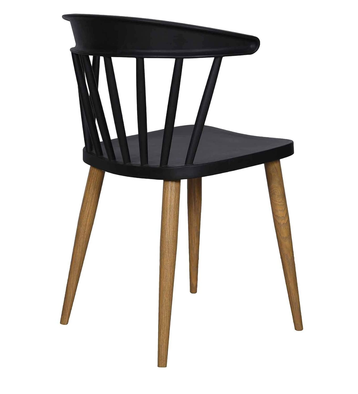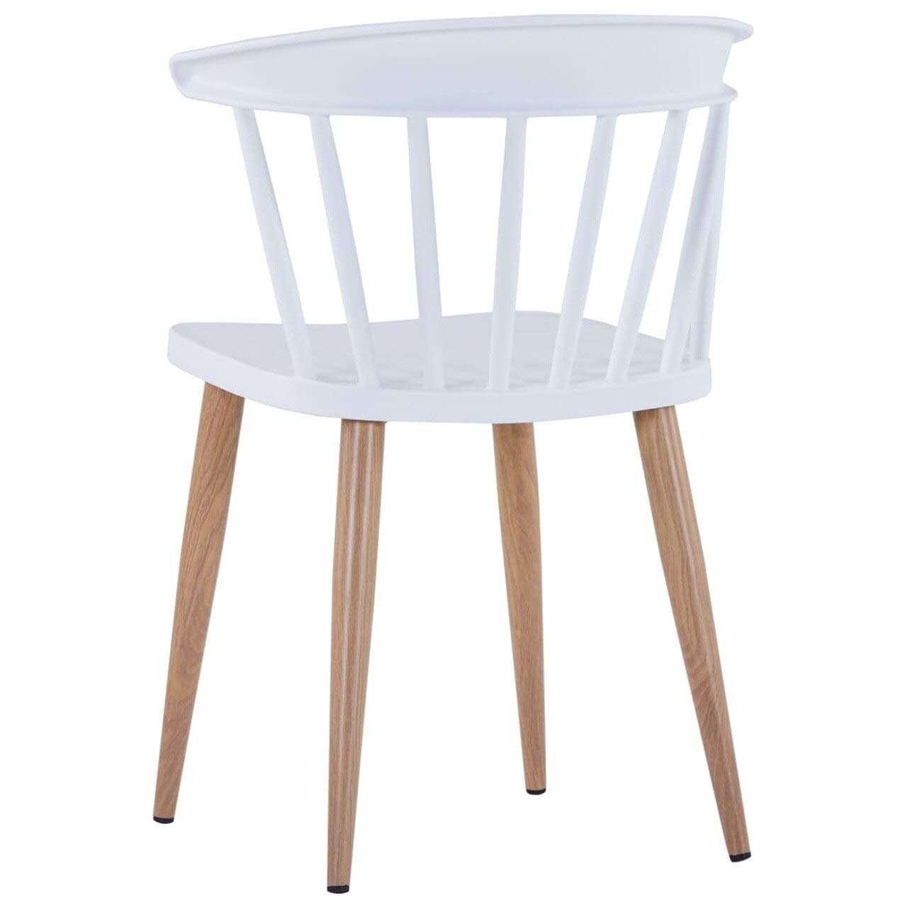 Modern Scandinavian dining chair featuring a smooth plastic seat paired with wooden-effect metal legs. Ideal for homes, cafés, restaurants, hotels, and other commercial spaces.