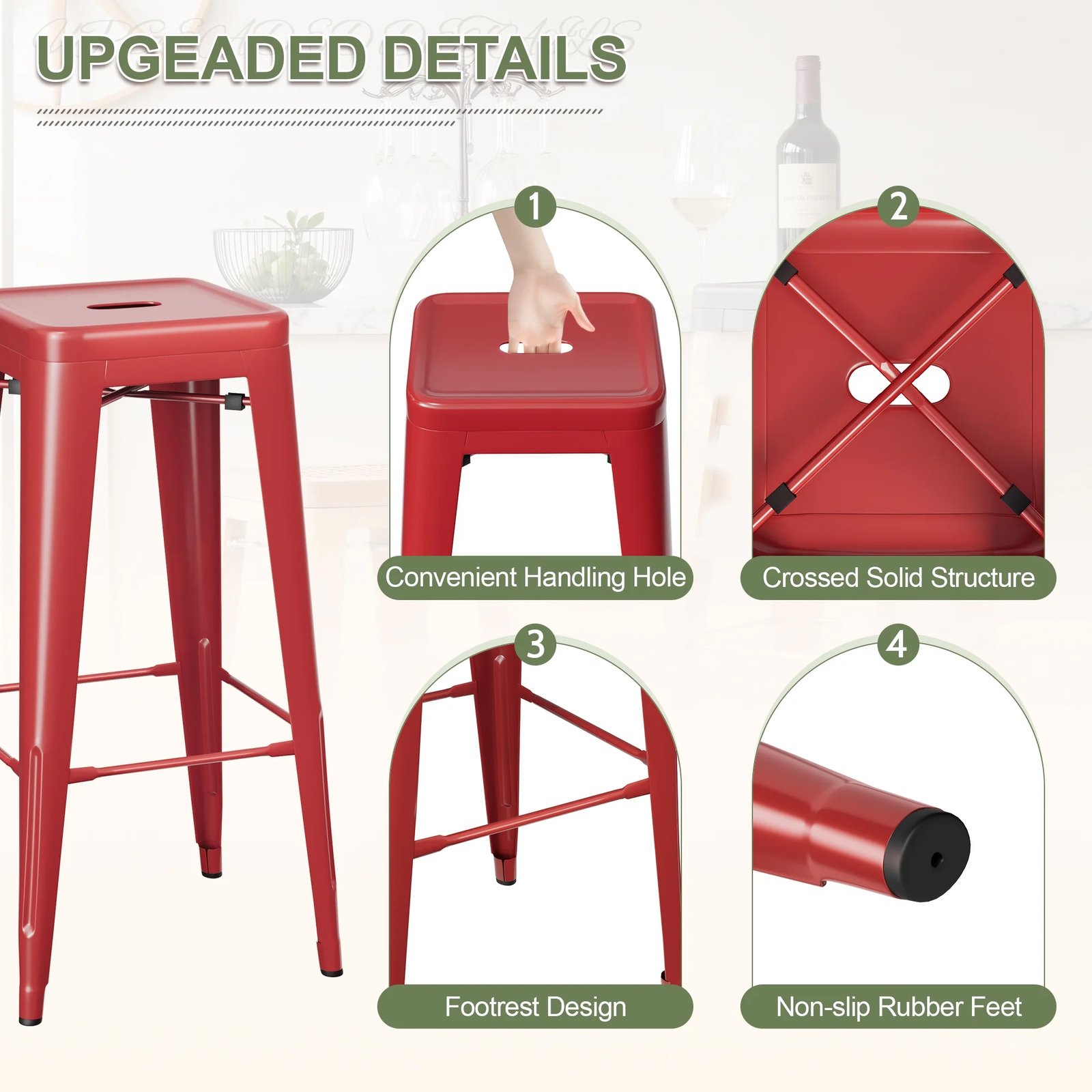 Add bold industrial style and durability to your kitchen, café, or bar space with the SOVA IronStack 30” Industrial Bar Stool Set. Crafted from heavy-duty metal with a powder-coated finish, these stackable stools are designed for both commercial and home use.