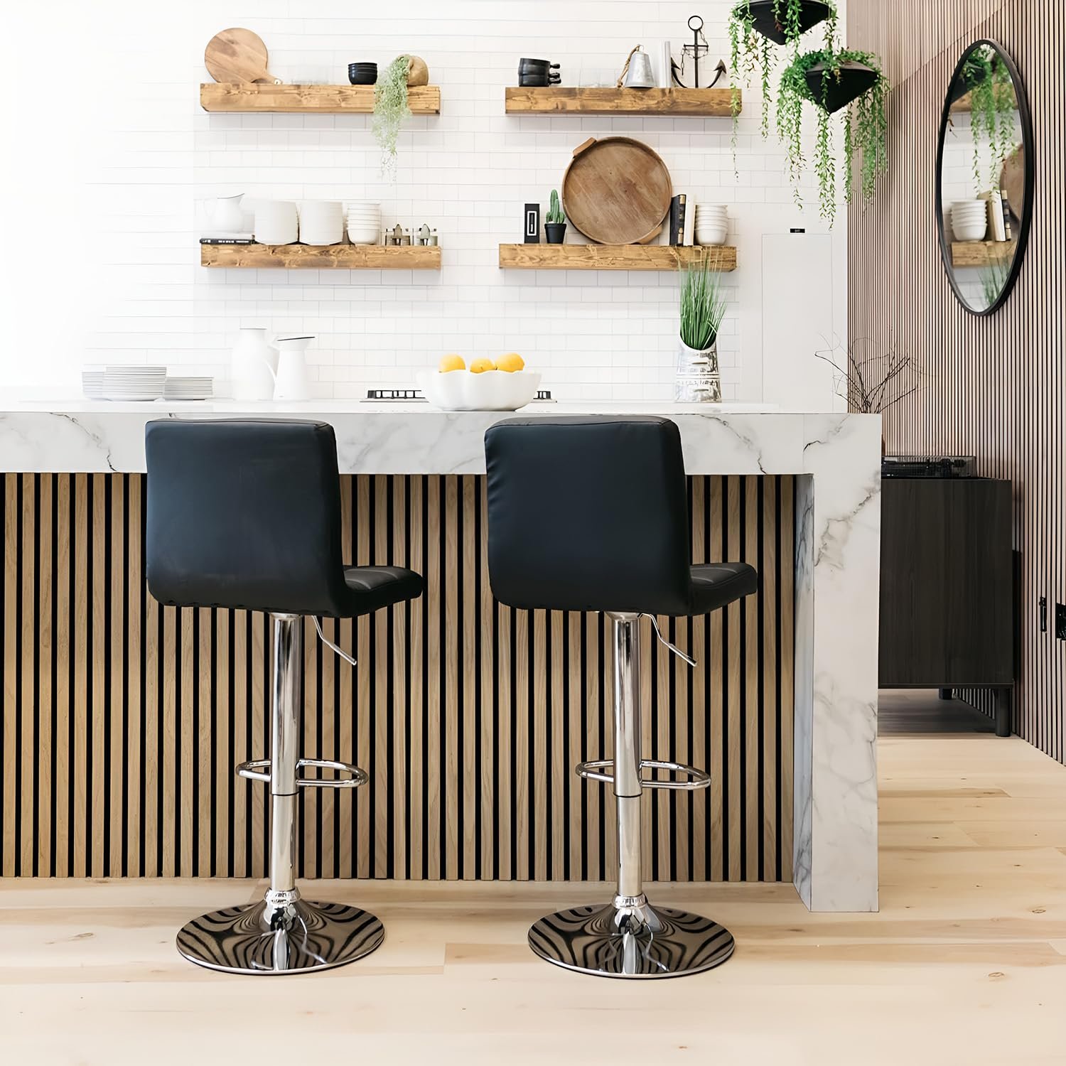 ✔ Height Adjustable Gas Lift – Convenient handle below the seat allows smooth height adjustment to match counter or bar tables.