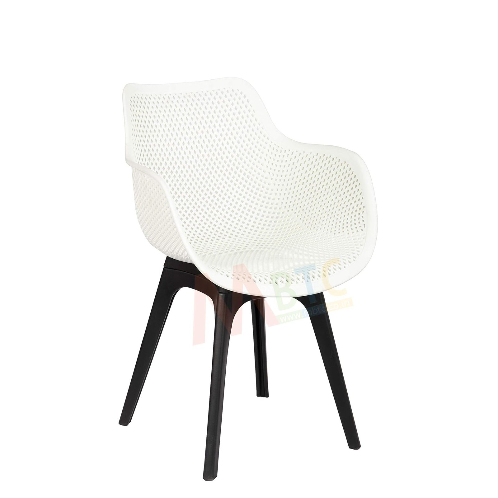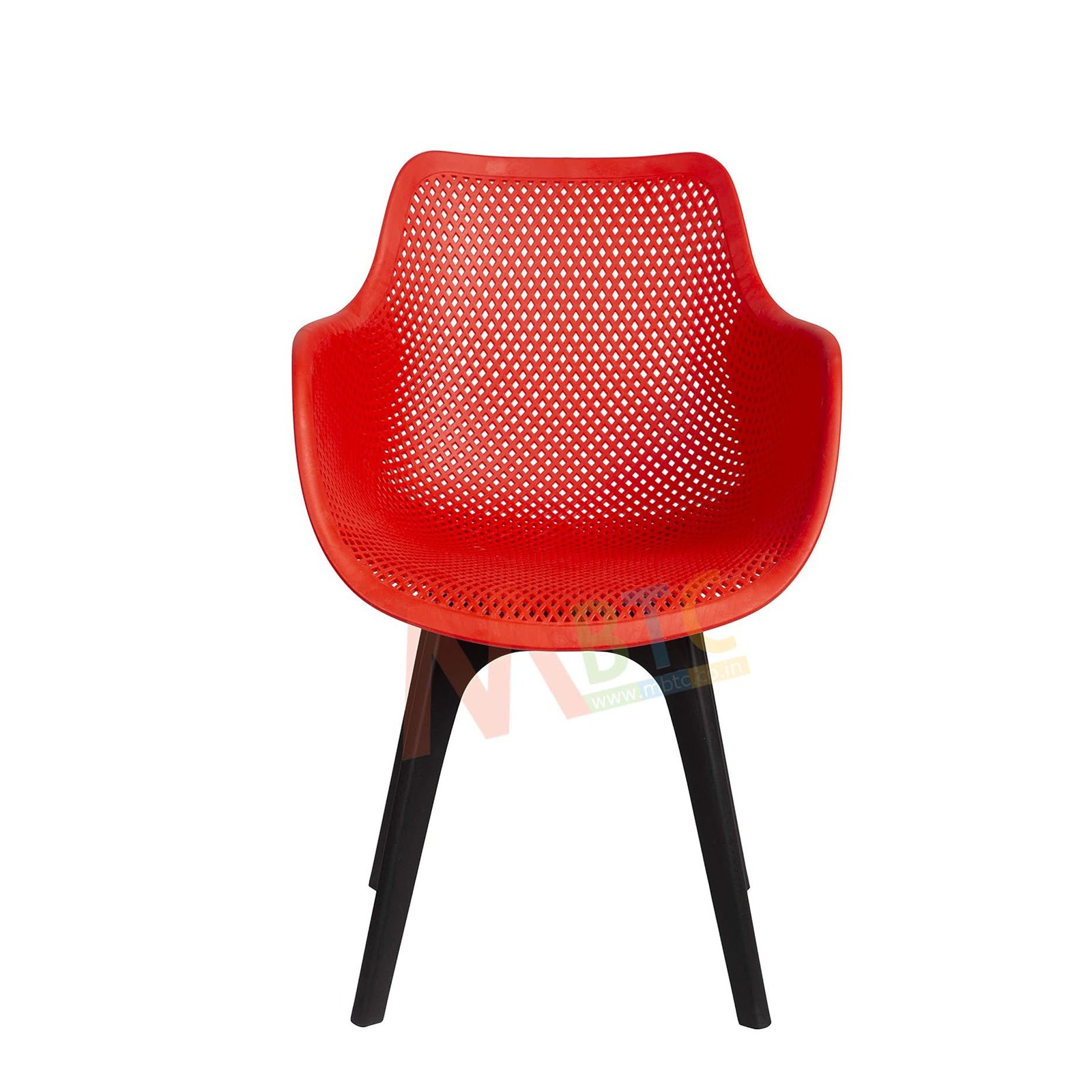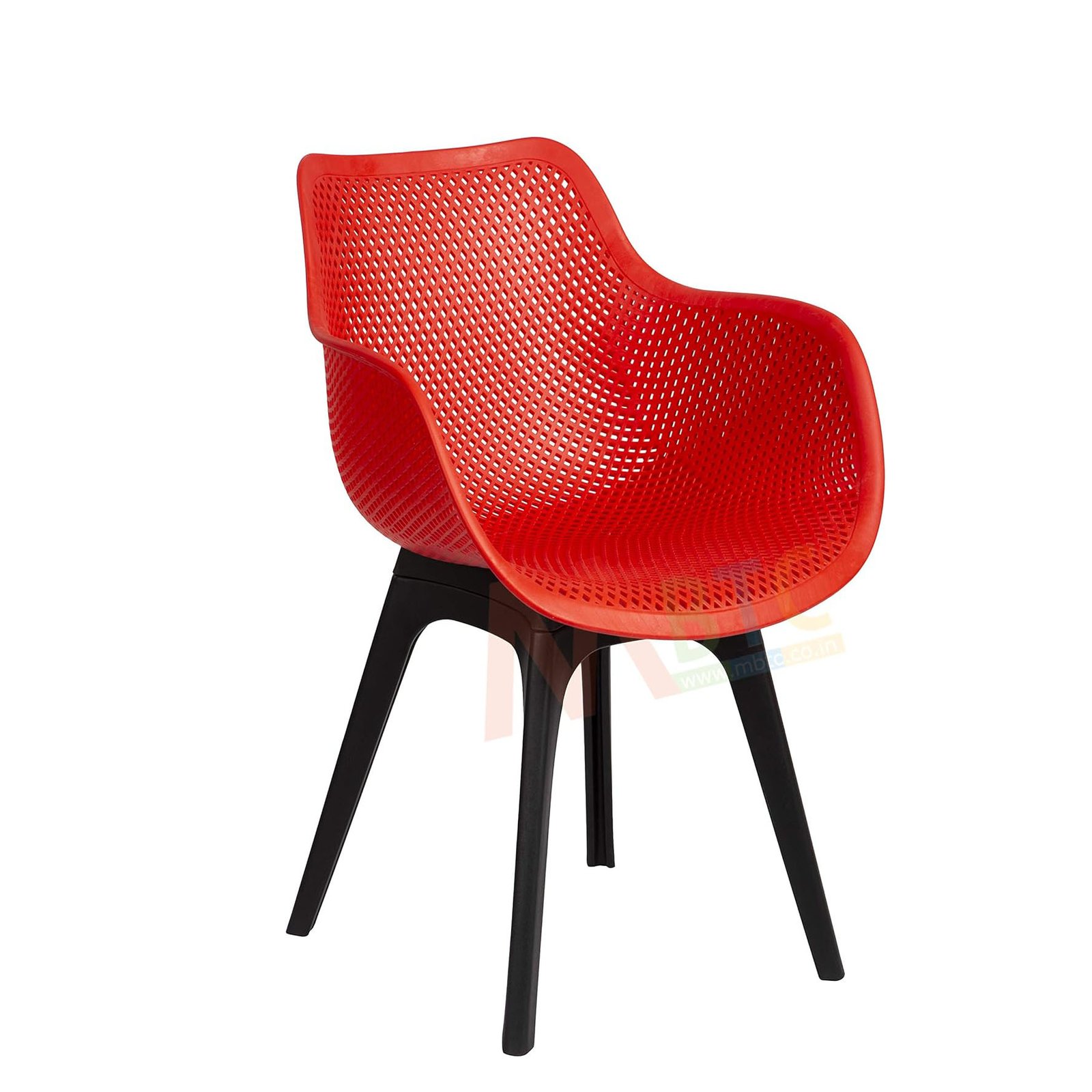 Designed with a smooth curved body and integrated armrests, this chair provides excellent everyday support. Ideal for dining areas, cafeterias, living rooms, balconies, gardens, patios, and terraces.