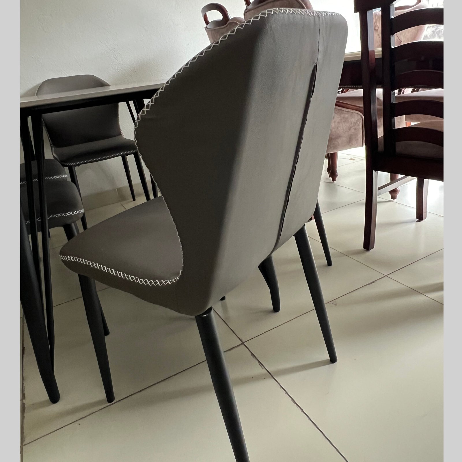 This contemporary upholstered dining chair combines practicality, comfort, and elegant design. Crafted with a durable frame and finished in premium PU leather upholstery, it offers a stylish yet functional seating solution.