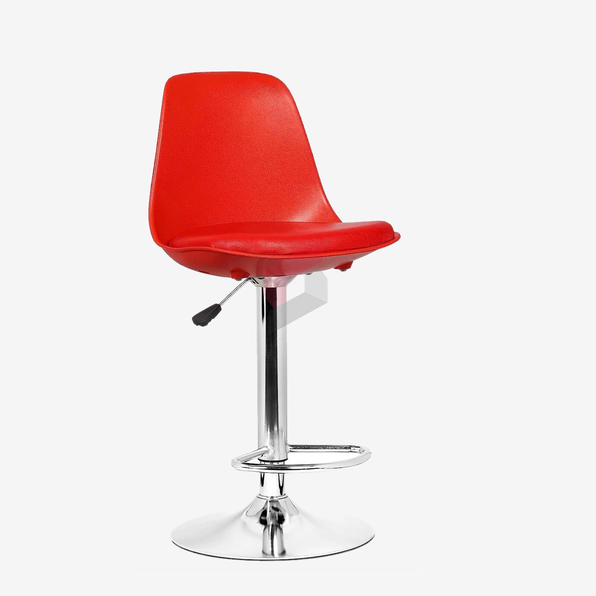 The innovative contoured chrome legs combined with oil-wax finish leather detailing create a luxurious yet minimal look. The circular footrest enhances comfort while the sturdy gas-lift system ensures smooth height adjustment for different counter levels.