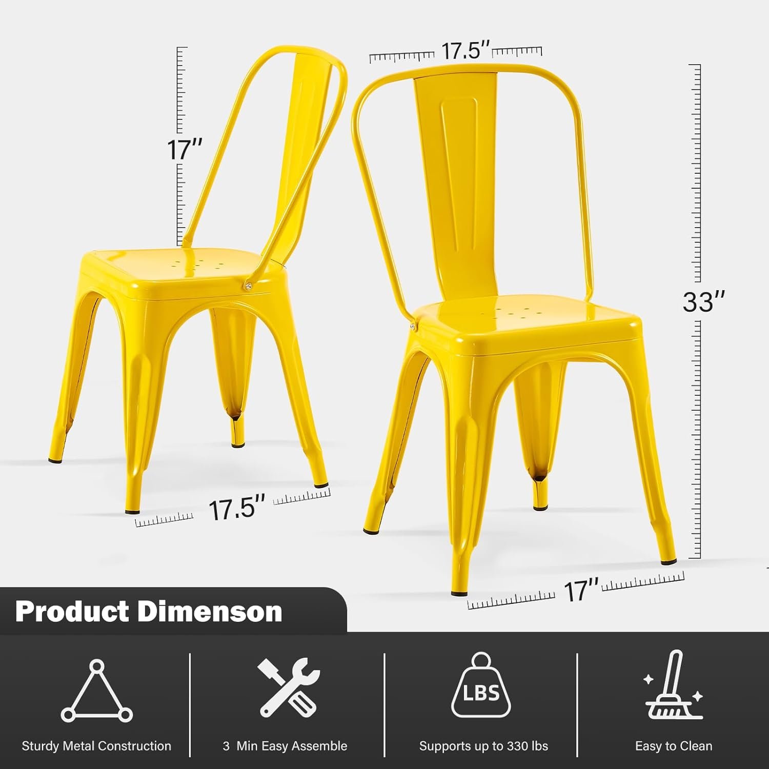 Lightweight yet durable, these chairs stack up to 8 chairs high — perfect for storage, cleaning, and commercial use. Plastic caps protect the frame when stacked.