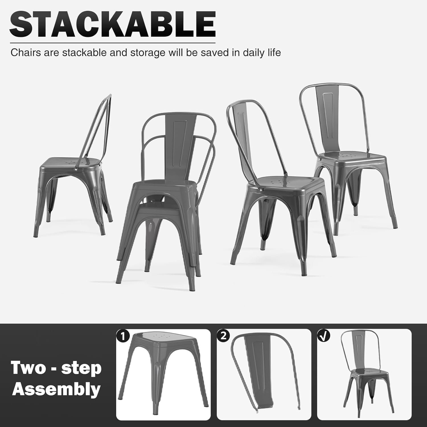 🪑 Space-Saving Stackable Design